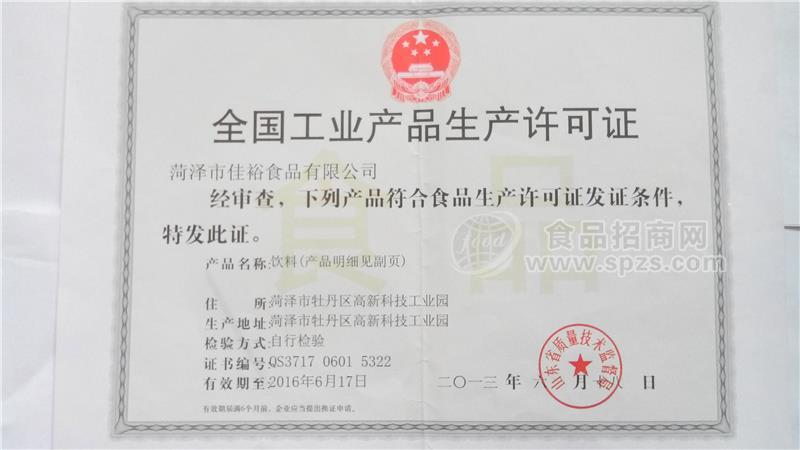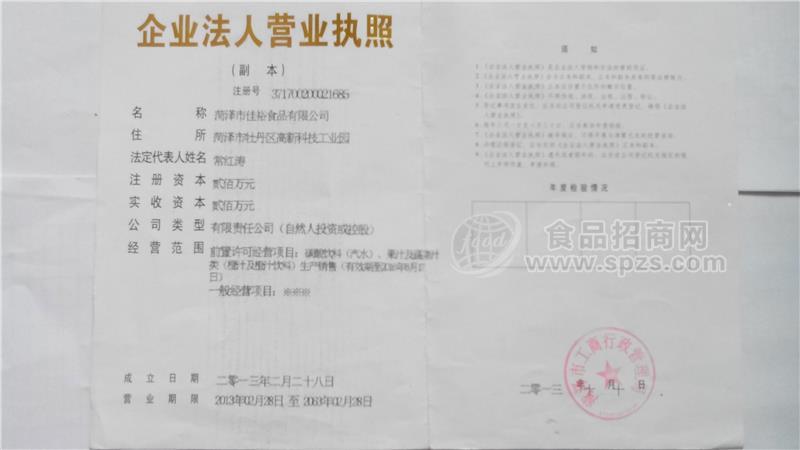 佳裕食品有限公司坐落于山东省胶西半岛的菏泽市省级经济开发区,成立于2013年5月,注册资金200万,占地面积150亩,公司现有员工270人,其中技术人员35名,是一个集产、供、销一体化的综合性企业。现公司下设七部一室,生产车间4个,本公司技术力量雄厚,公司生产的咖啡饮料系列果汁系列膳食纤维饮料系列碳酸汽水系列纯净水等产品远销全国各地,产品制作精细,包装精美,质量可靠,深得广大消费者的青睐。